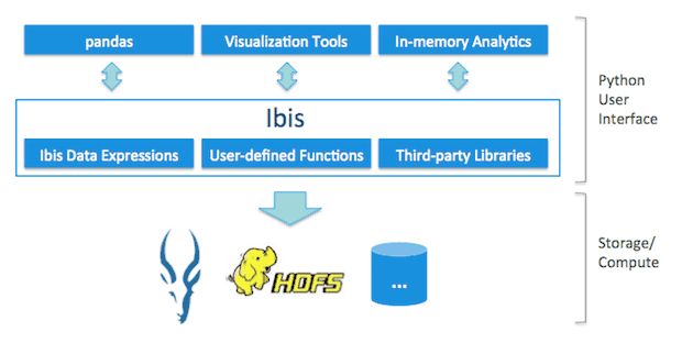 Ibis is a bridge between Python and Big Data. Ibis enables pandas handling Big Data.