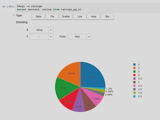 In the nbviewer, we can not see the result of SQL, but we can visualize the result of SQL with %%sql magic command. That’s awesome :)