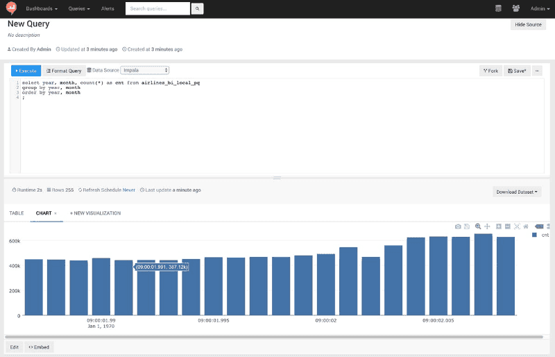 In this post, we connect to Impala from Redash and visualize data.