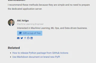 Putting three files enables you to show recommended articles into your Hugo blog, like the screenshot in the top of this article.