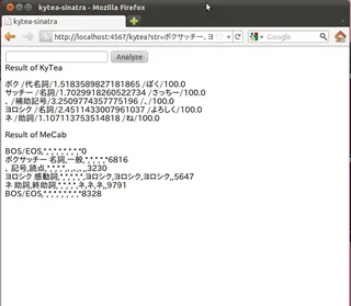 sinatraでKyTeaをブラウザから試すkytea-sinatra作ってみた