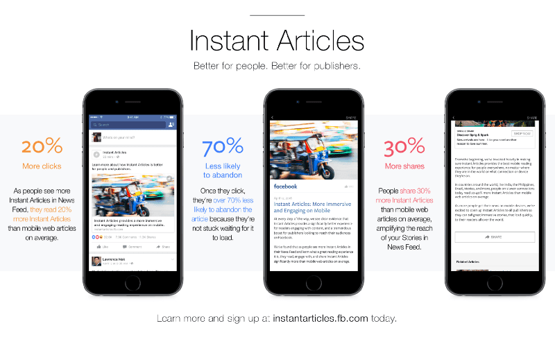 しかし、Facebookを通じたニュースには別の問題も指摘されている。Tech CrunchはFacebookのInstant Articlesの二次効果について指摘している。Instant Articleはニュースなどの記事をサクサクみるために、Facebookがシンプルなデザインで配信してアプリ内で見られるというものだ。