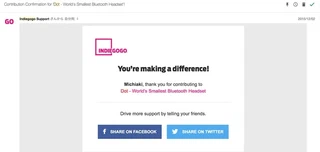 僕がバックしたのは、miyagawaさんがdotみたいなイヤホンをinstagramか何かで買ったというのを見て、これかな?と勘違いしたからだったんですが、2015年12月にindigogoでバックしてたみたいです。ステレオで$79+$29のシッピングコストです。最初の申込みから少し遅れていたのですが、当時は2016年4月に届く予定と言っていて、結局届いたのは2016年の10月でした。