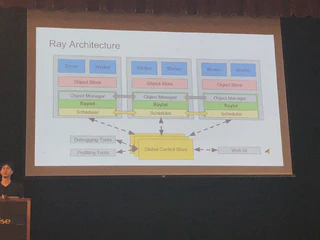 - 機械学習のワークロードはすべてPythonでやるぞという意気込みを強く感じた。会場からはSparkとどう連携するの?みたいな話もよく出たが、PySparkで一応…みたいな答えが多かった。特に cloudpickle を使ってオブジェクトばらまいて並列分散処理をすればいいじゃんという発想は単純ながら力強い。そして、Apache Arrowでノードのworker間のshared memory作るというのは今どきだなと。PythonはDSLとして便利なポジションになってるのかなぁ