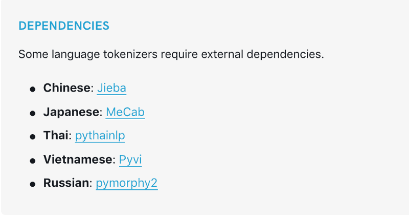 [https://spacy.io/usage/models](https://spacy.io/usage/models) Spacy depends on MeCab (mecab-python3)