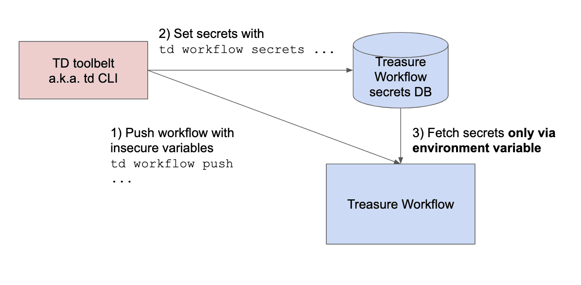 Treasure Workflowではセキュアな情報を扱うためにdigdagの secrets を格納するデータベースを提供しています。