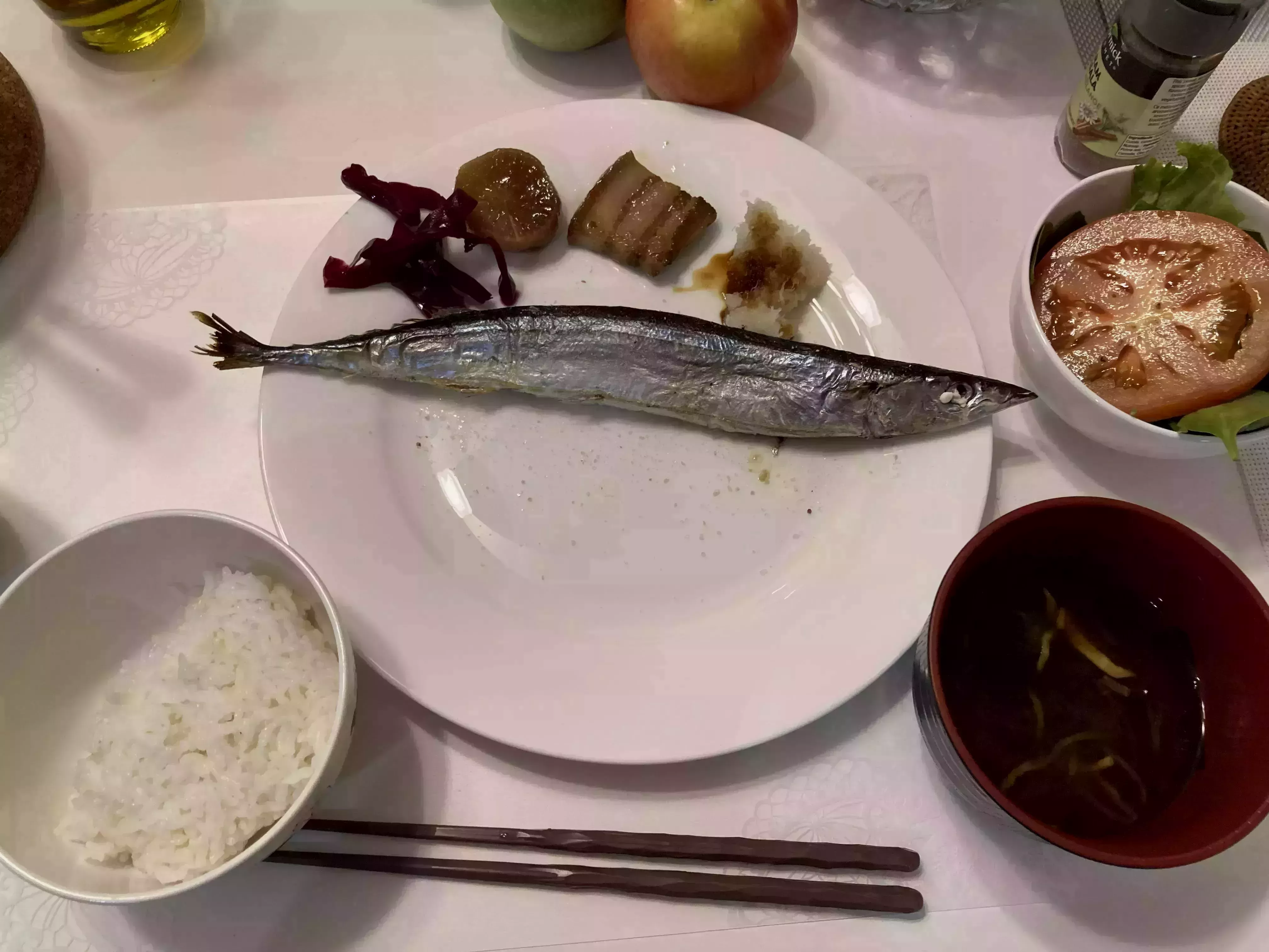 日系スーパーでサンマを買って焼いた様子(レシピ)。これもガスオーブンでいい感じに焼ける。
