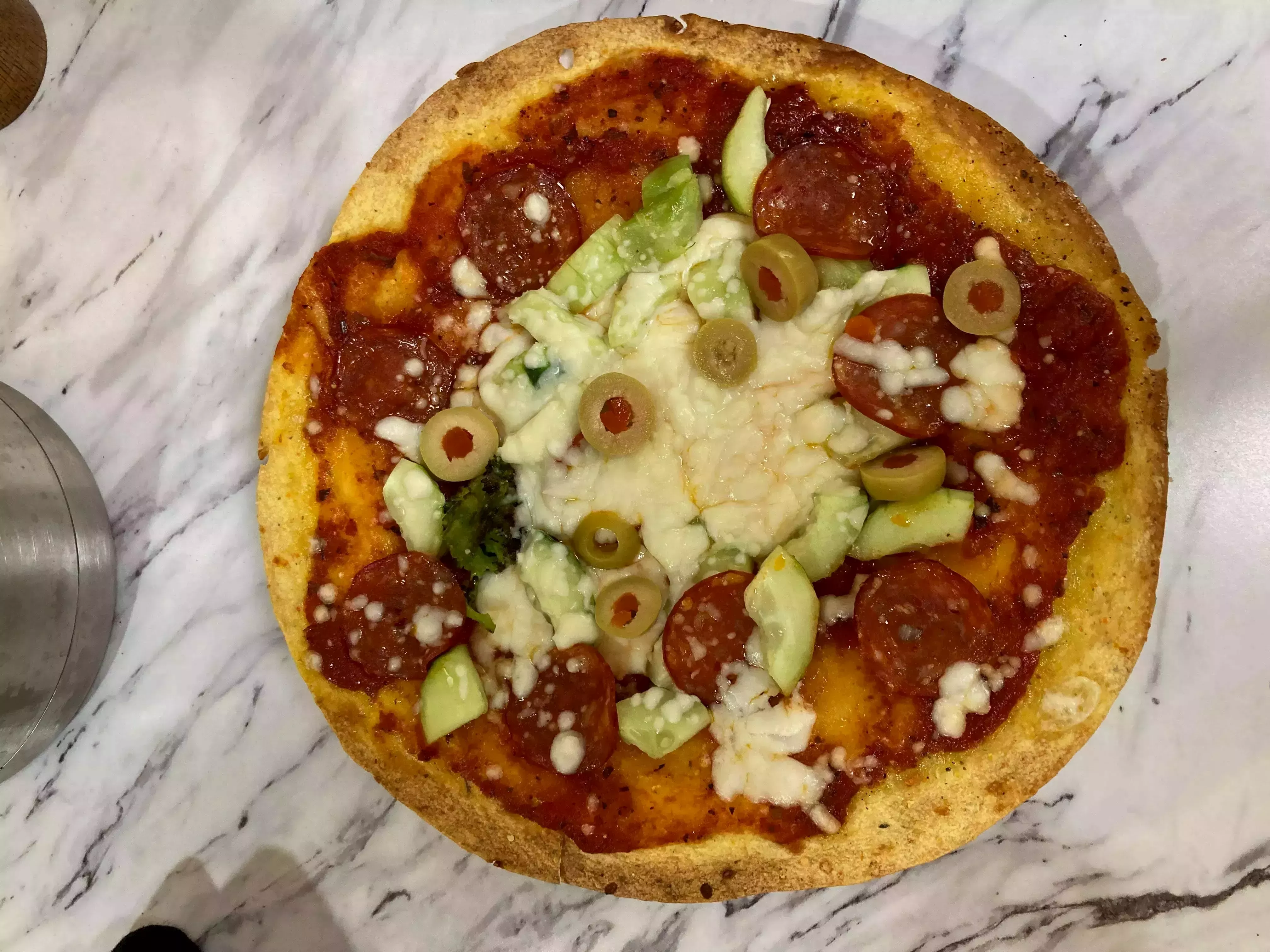 トルティーヤ記事を使ったピザ(レシピ)。サルサソースやワカモレ、トルティーヤチップなどメキシカンの食材も豊富なのが楽しい。