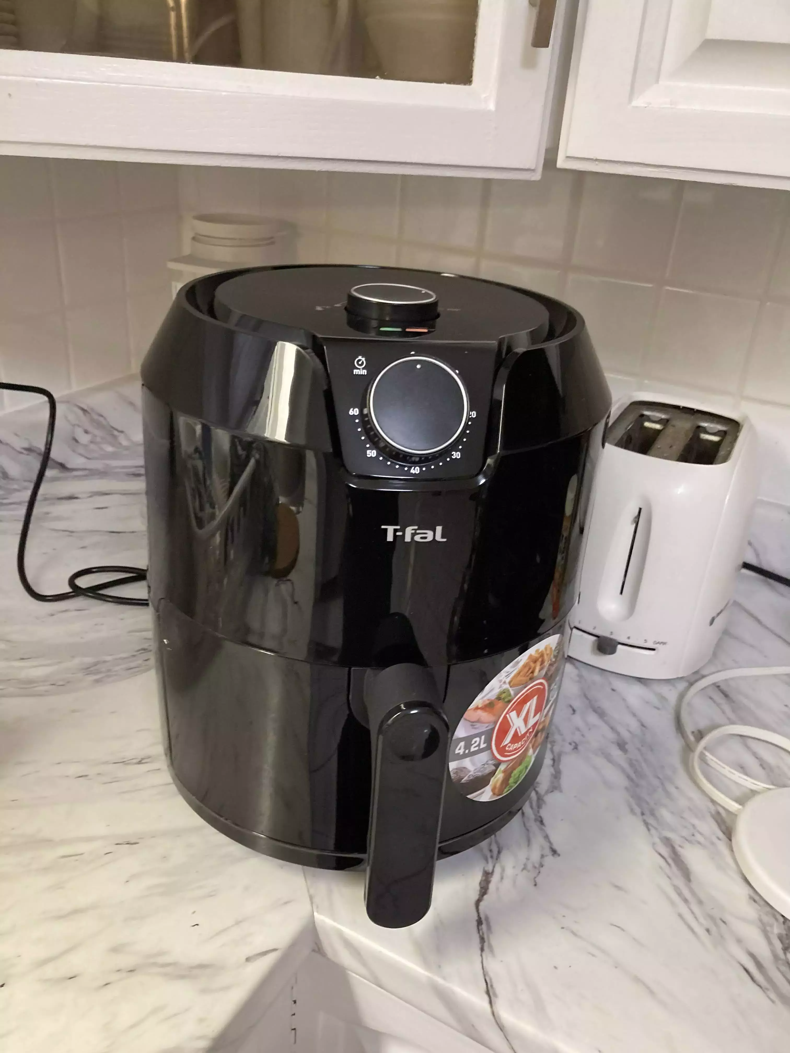 ティファールのエアフライヤー。中を見てみると電熱線とファン、そしてアナログタイマーというシンプルな一品。